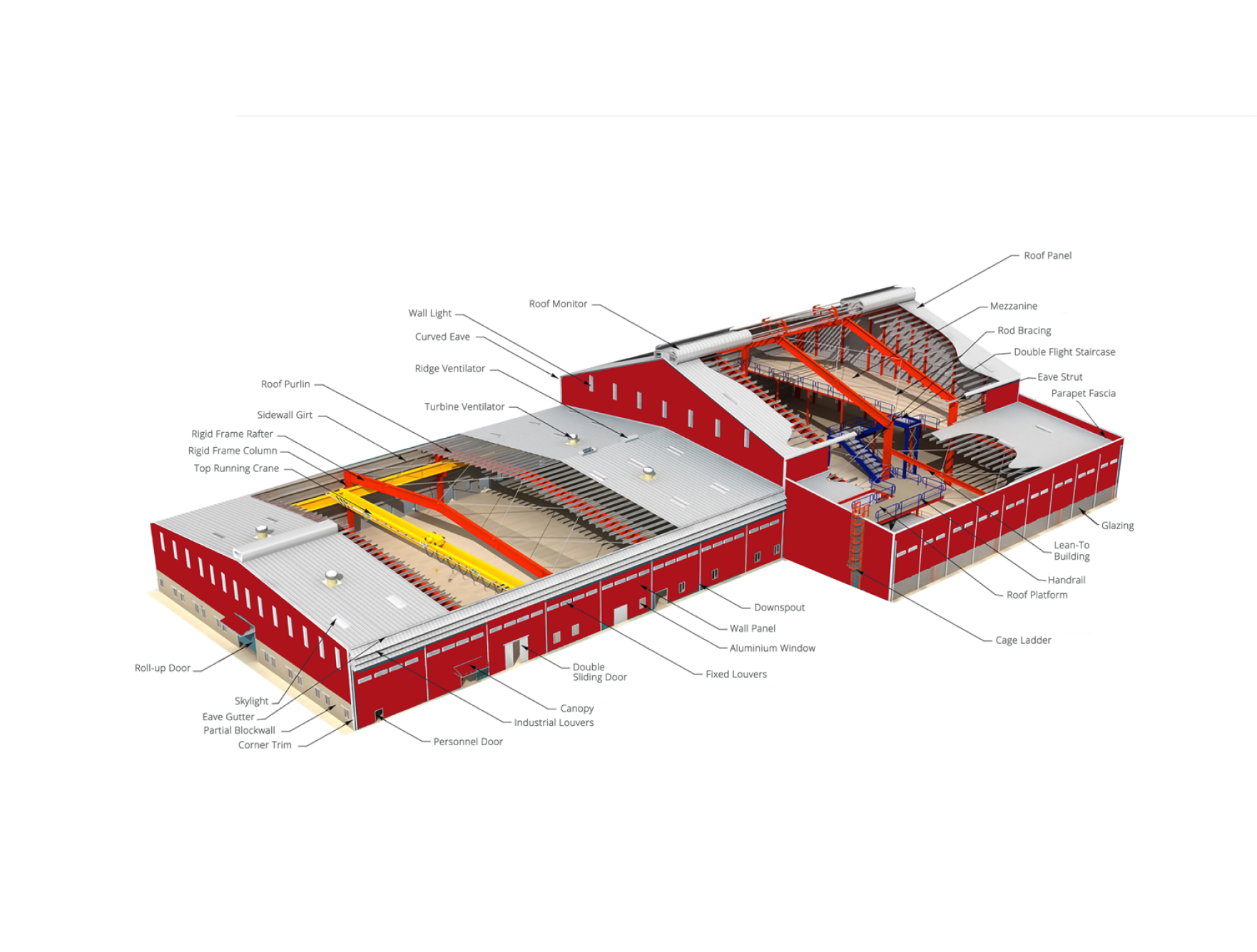 Steel buildings are commonly used as factories, warehouses, showrooms, Sports Centres, Hypermarkets, departmental stores, Cold Stores, Swimming Pool Enclosures, Recreational Facilities, Wedding Halls, Office Buildings, Multipurpose Halls, Educational Buildings, Aircraft Hangars, Gas Stations, Vehicle parking sheds and Restaurants. They are well suited for any entity that requires a sturdy and versatile one, two or three story structure.
